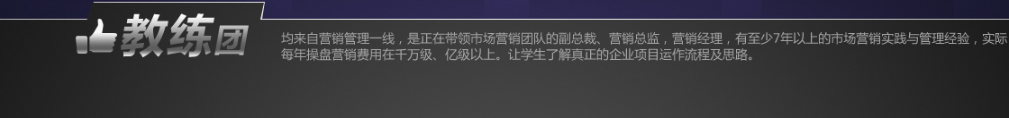 中国网络营销教育体系"第一架构师"、网络营销课程体系"首席研发专家"、网络营销产品"研发师"、网络营销研发团队"领导人物"、网络营销"技术专家"、行业级&企业级网络营销"特聘顾问"、丰富网站"快速运营"之道,目前任达内网络营销教研总监。