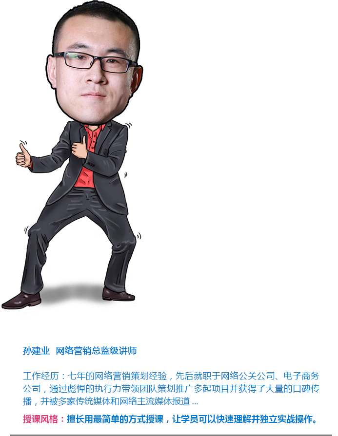 孙建业 网络营销总监级讲师 7年的网络营销实战策划经验