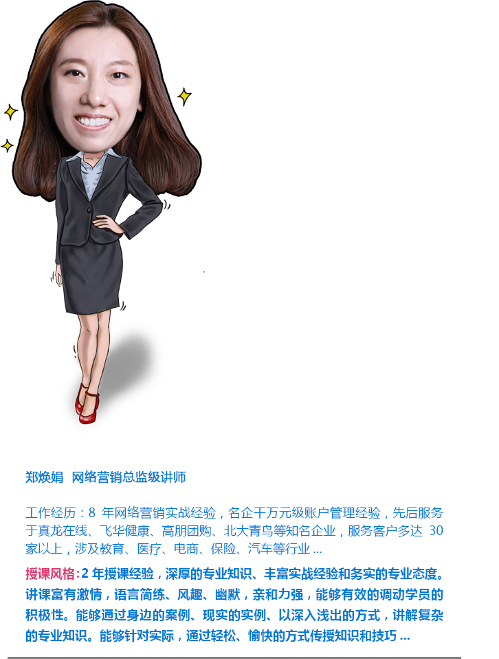 郑焕娟 网络营销总监级讲师 名企千万元级账户管理经验