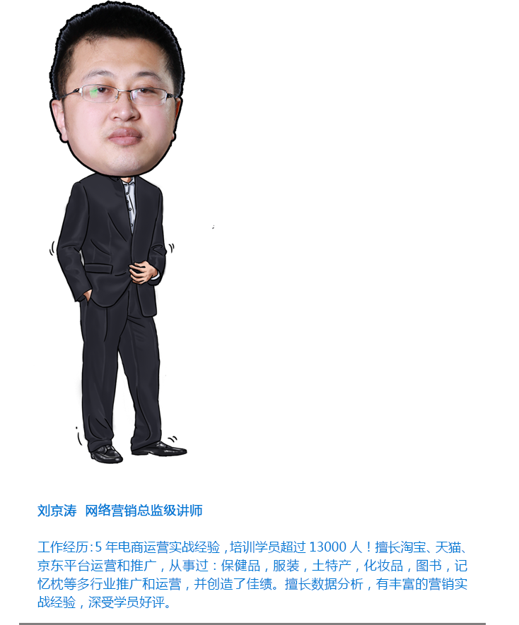 刘京涛 网络营销总监级讲师 5年电商运营经验,擅长数据分析