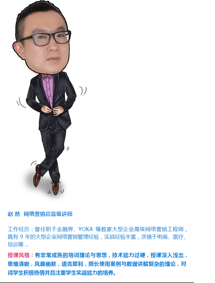 赵 然 网络营销总监级讲师 9年的大型企业网络营销管理经验
